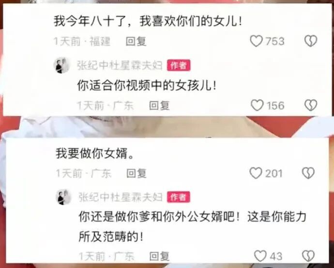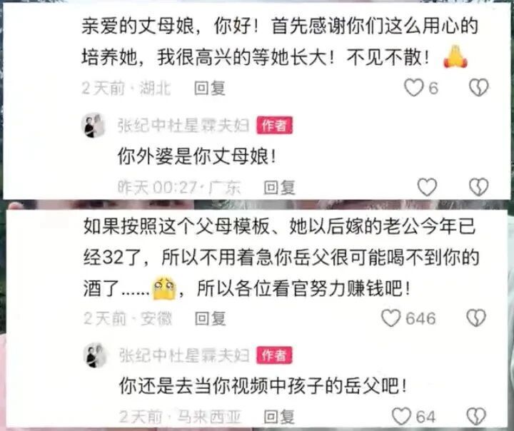 其中有网友表示“我要做你女婿”,张纪中回应“你还是做你爹和你外公女婿吧”,网友称其妻子为“丈母娘”,张纪中怒怼“你外婆是你丈母娘”。