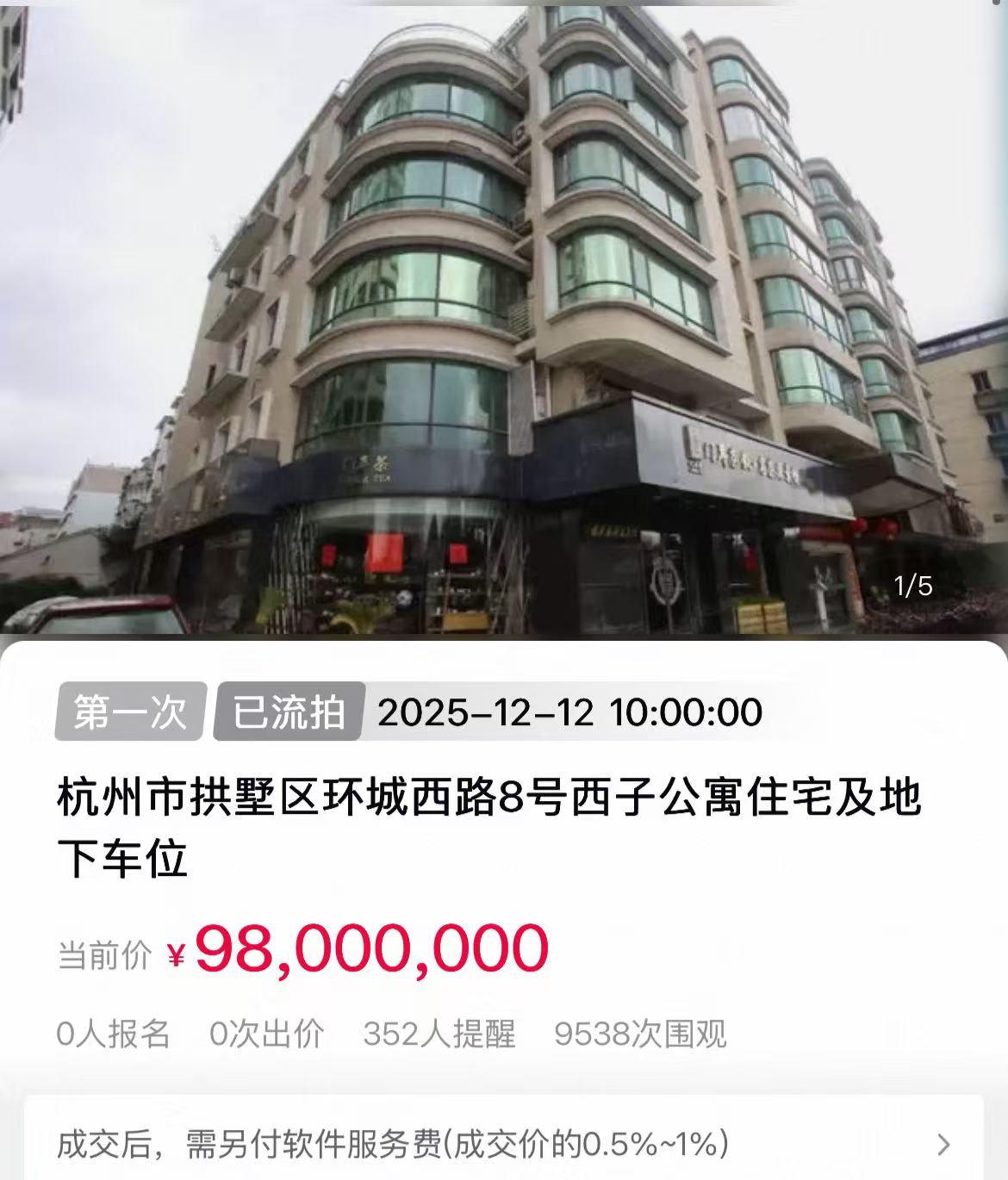 一方面,9800万元的起拍价还是比较高的。作为参考,2022年,西子公寓曾经有一套建筑面积235.82m²的7楼房源被司法拍卖,最终以3095.8万元成交,折合单价约13.1万元。因此,9800万元这个价格,在不少年轻富人看来,不如等待杭州的地王项目们上市,毕竟现在的新房产品力已经是Next Level,而且钱塘江边、运河边、西溪湿地旁边也各有各的风采。